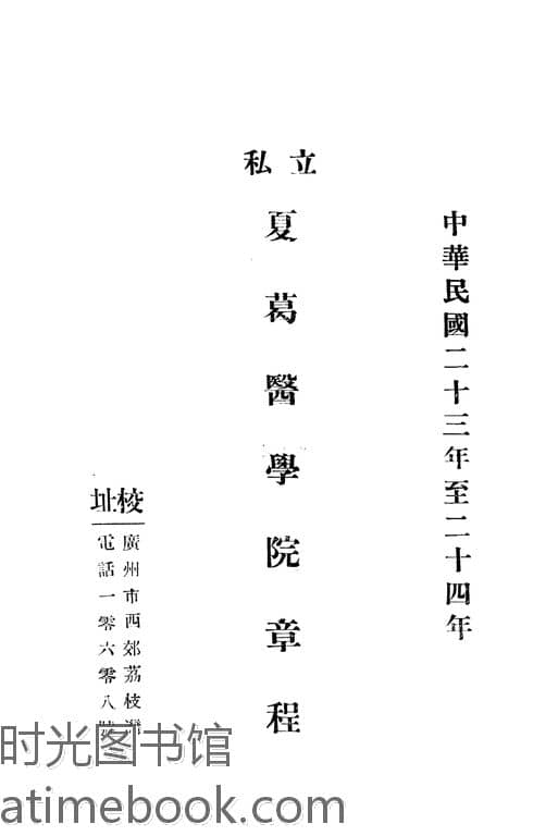 | 网盘路径:/时光图书馆珍藏系列/书籍文件/老图书/《私立夏葛医学院章程》电子版合集.db | ||