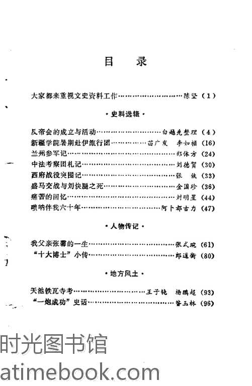 | 网盘路径:/时光图书馆珍藏系列/书籍文件/老图书/《乌鲁木齐文史资料_第1辑》电子版合集.db | ||