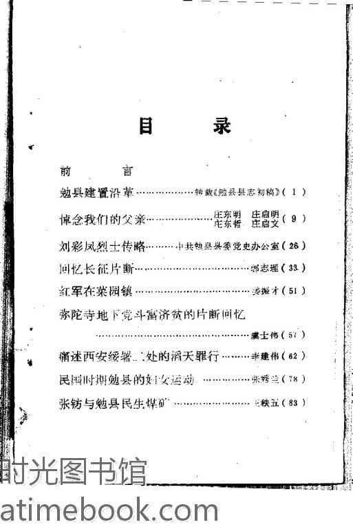 | 网盘路径:/时光图书馆珍藏系列/书籍文件/老图书/《勉县文史资料_第1辑》电子版合集.db | ||