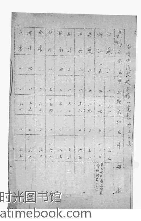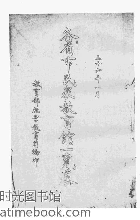 | 网盘路径:/时光图书馆珍藏系列/书籍文件/老图书/《各省市民众教育馆一览表》电子版合集.db | ||