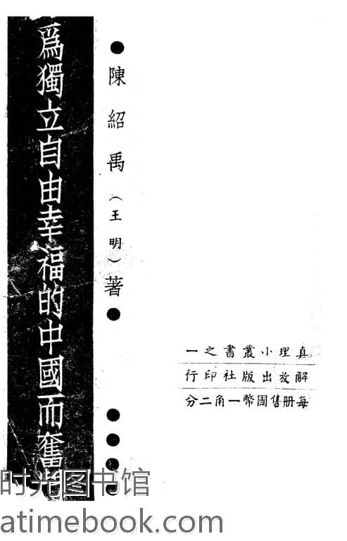 | 网盘路径:/时光图书馆珍藏系列/书籍文件/老图书/《为独立自由幸福的中国而奋斗》电子版合集.db | ||