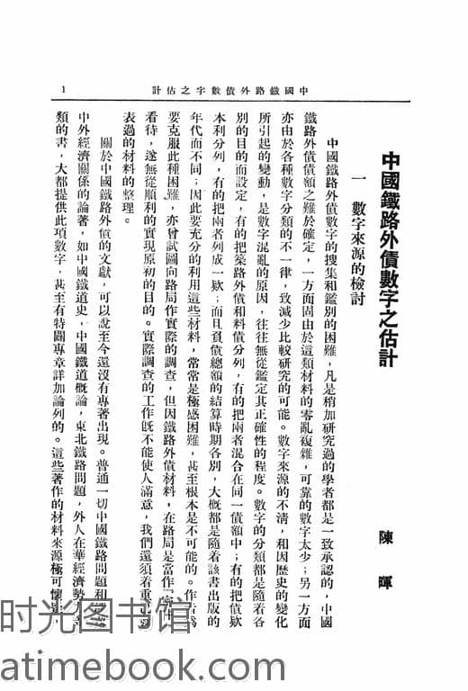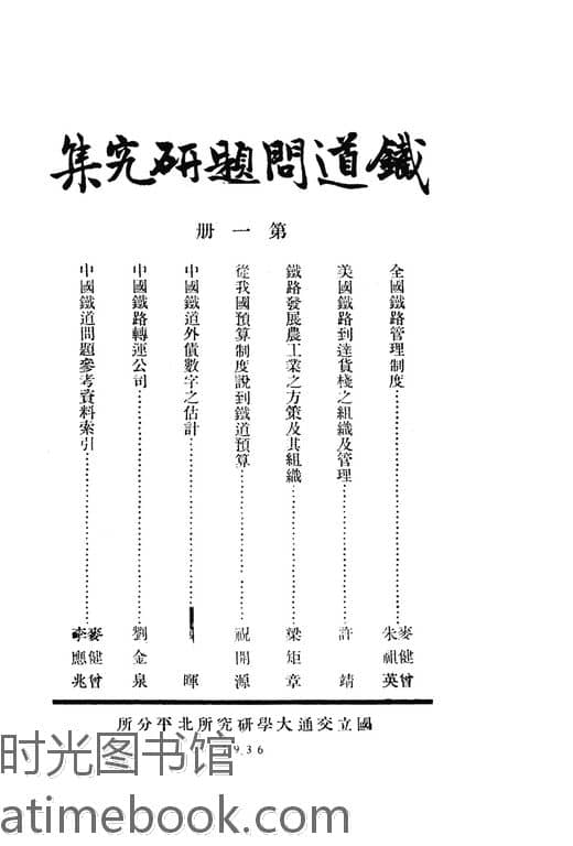 | 网盘路径:/时光图书馆珍藏系列/书籍文件/老图书/《铁道问题研究集_第1册(_中国铁路外债数字之估计)》电子版合集.db | ||