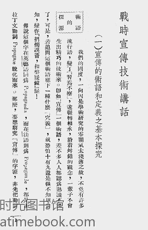| 网盘路径:/时光图书馆珍藏系列/书籍文件/老图书/《战时宣传技术讲话》电子版合集.db | ||