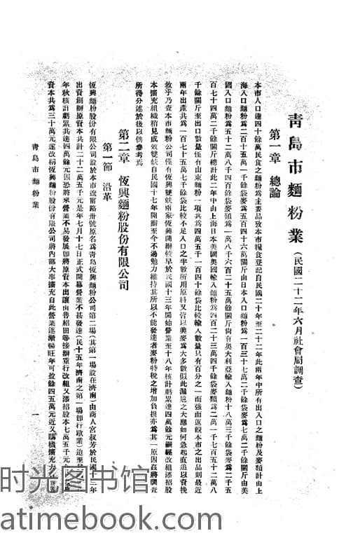 | 网盘路径:/时光图书馆珍藏系列/书籍文件/老图书/《青岛市面粉业调查》电子版合集.db | ||