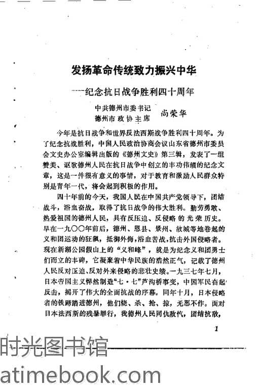 2-发扬*传统_致力振兴中华——纪念抗日战争胜利四十周年_*德州市委书记德州市*主席_尚荣华