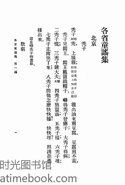 | 网盘路径:/时光图书馆珍藏系列/书籍文件/老图书/《各省童谣集》电子版合集.db | ||