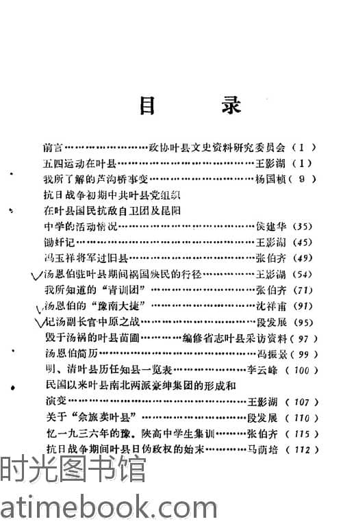 | 网盘路径:/时光图书馆珍藏系列/书籍文件/老图书/《叶县文史资料_第1辑》电子版合集.db | ||