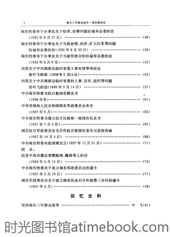 | 网盘路径:/时光图书馆珍藏系列/书籍文件/老图书/《南方三年游击战争_闽东游击区》电子版合集.db | ||