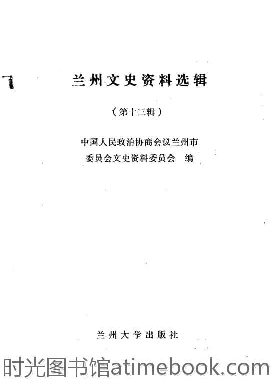 | 网盘路径:/时光图书馆珍藏系列/书籍文件/老图书/《兰州文史资料选辑_第13辑》电子版合集.db | ||