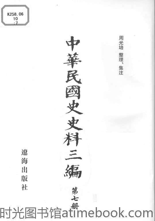 | 网盘路径:/时光图书馆珍藏系列/书籍文件/老图书/《中华民国史史料三编_第7册》电子版合集.db | ||