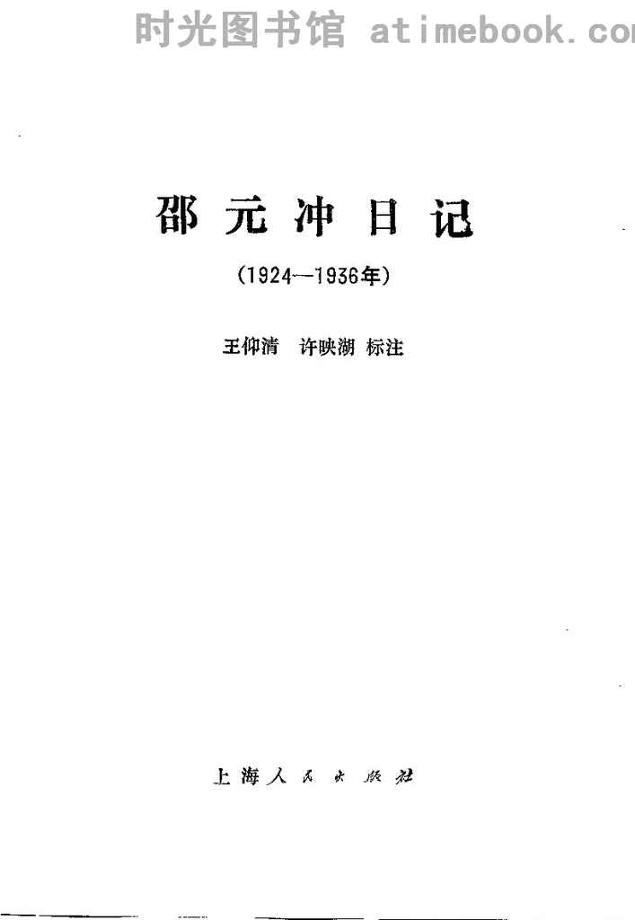 | 网盘路径:/时光图书馆珍藏系列/书籍文件/老图书/《邵元冲日记_(_1924—1936)》电子版合集.db | ||