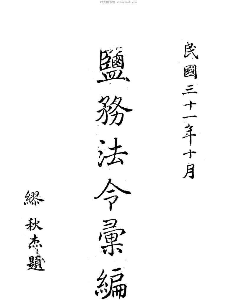 | 网盘路径:/时光图书馆珍藏系列/书籍文件/老图书/《盐务法令丛编》电子版合集.db | ||