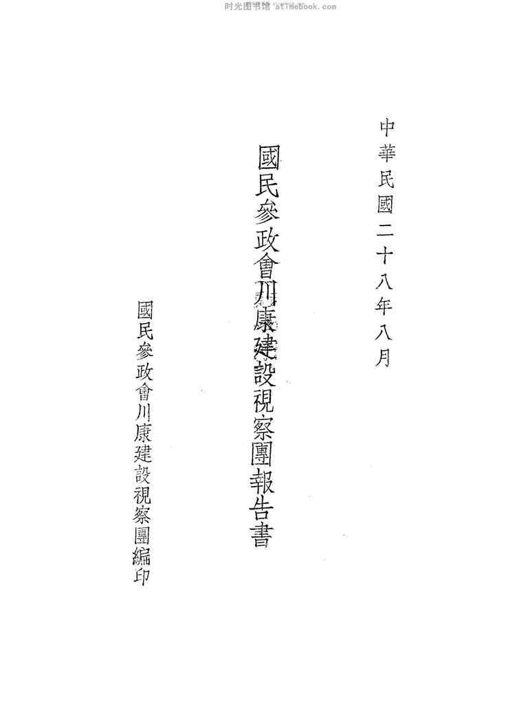 | 网盘路径:/时光图书馆珍藏系列/书籍文件/老图书/《国民参政会川康建设视察团报告书》电子版合集.db | ||