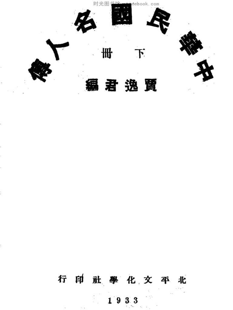 | 网盘路径:/时光图书馆珍藏系列/书籍文件/老图书/《中华民国名人传_下册》电子版合集.db | ||