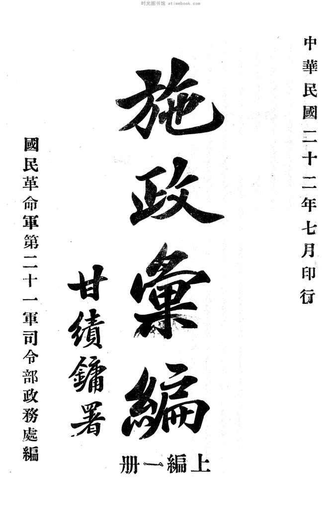 | 网盘路径:/时光图书馆珍藏系列/书籍文件/老图书/《施政汇编》电子版合集.db | ||