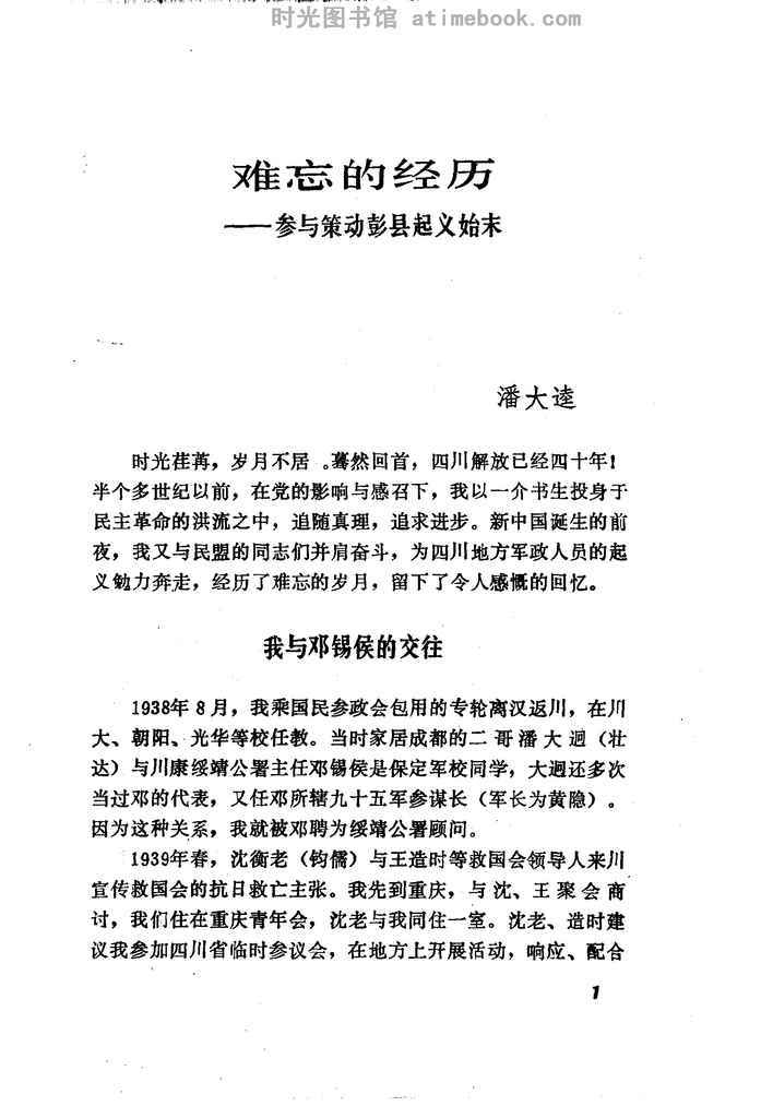 2-难忘的经历——参与策动彭县起义始末_潘大逵