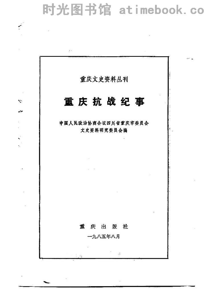 | 网盘路径:/时光图书馆珍藏系列/书籍文件/老图书/《重庆文史资料丛刊_重庆抗战纪事》电子版合集.db | ||