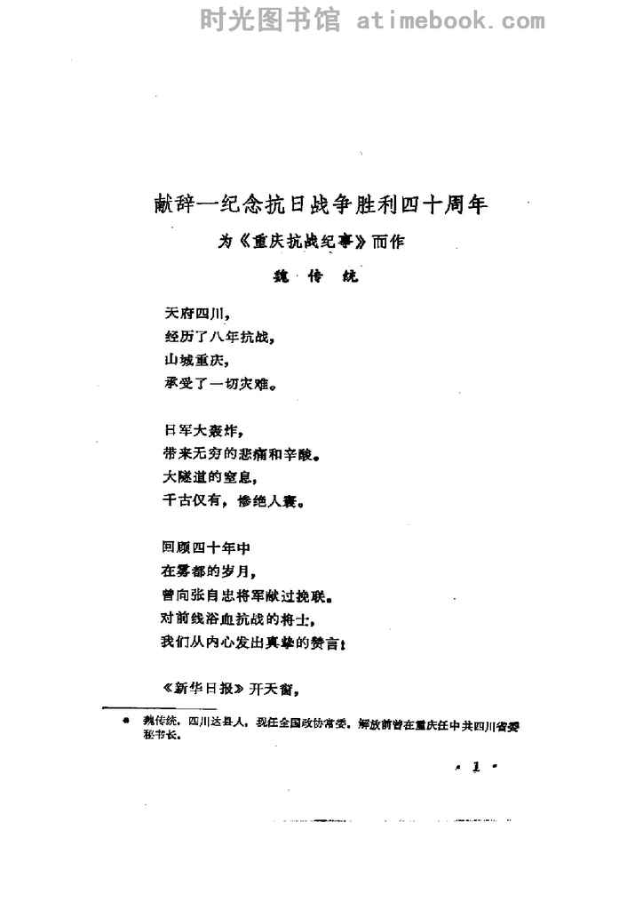 2-献辞-纪念抗日战争胜利四十周年为《重庆抗战纪事》而作_魏传统