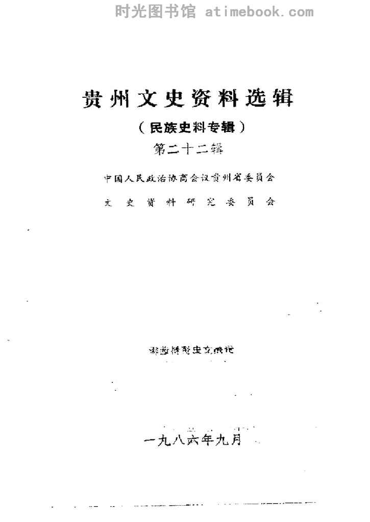 | 网盘路径:/时光图书馆珍藏系列/书籍文件/老图书/《贵州文史资料选辑_第22辑_(民族史料专辑)》电子版合集.db | ||