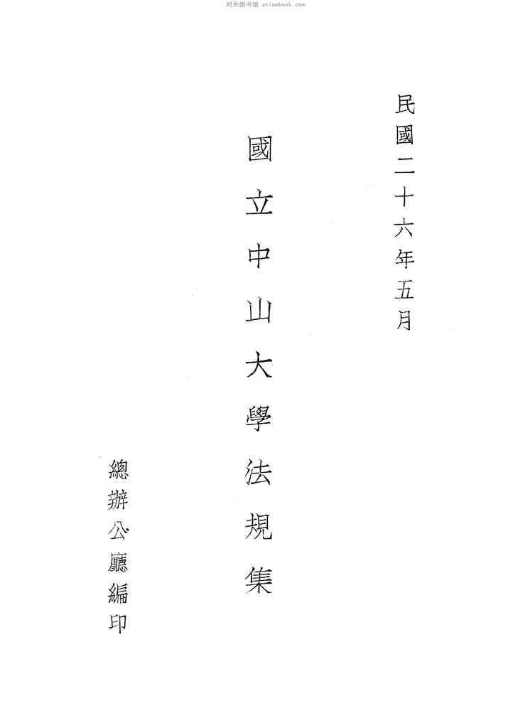 | 网盘路径:/时光图书馆珍藏系列/书籍文件/老图书/《国立中山大学法规集》电子版合集.db | ||