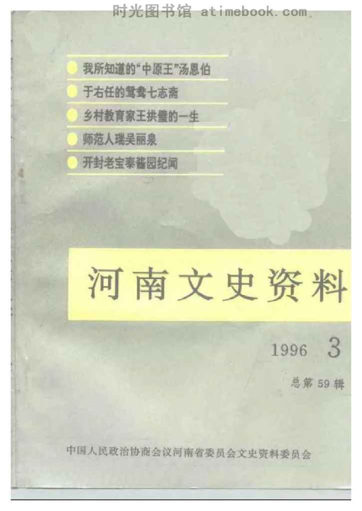 | 网盘路径:/时光图书馆珍藏系列/书籍文件/老图书/《河南文史资料_第59辑》电子版合集.db | ||