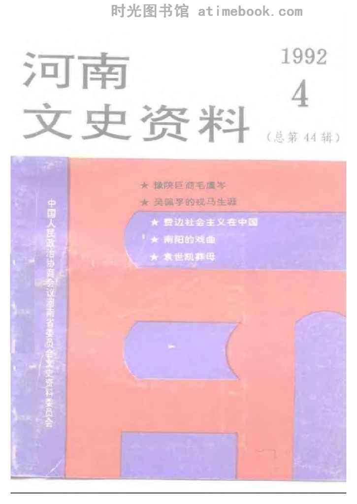 | 网盘路径:/时光图书馆珍藏系列/书籍文件/老图书/《河南文史资料_1992年第4辑_总第44辑》电子版合集.db | ||