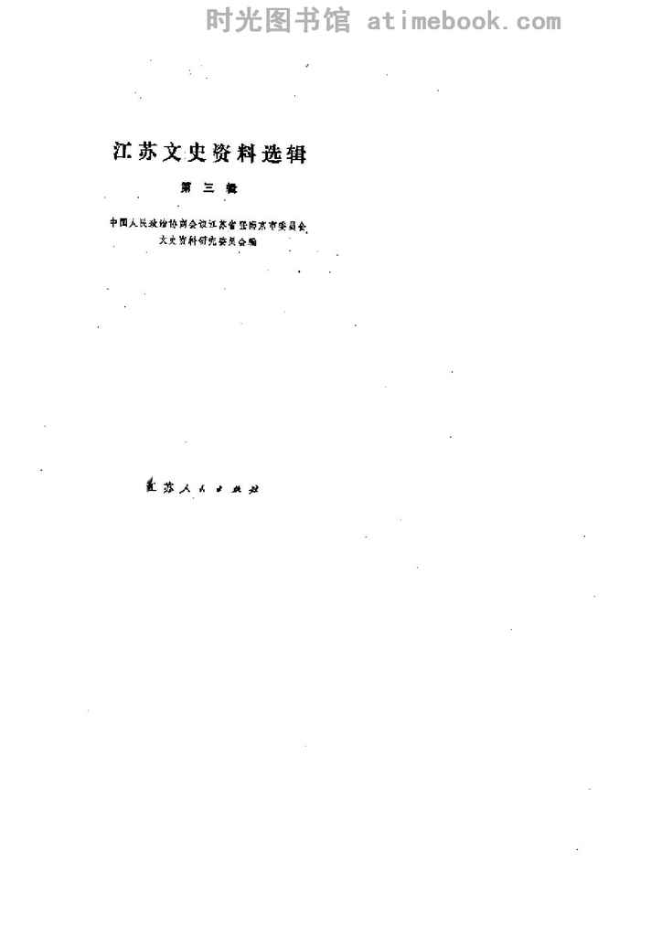 | 网盘路径:/时光图书馆珍藏系列/书籍文件/老图书/《江苏文史资料选辑_第3辑》电子版合集.db | ||
