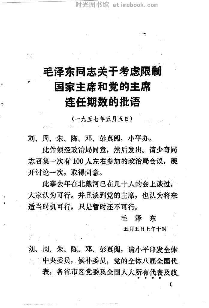 2-毛泽东同志关于考虑限制国家主席和*的主席连任期数的批语(一九五七月年五月五日)
