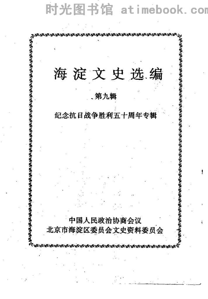 | 网盘路径:/时光图书馆珍藏系列/书籍文件/老图书/《海淀文史选编_第9辑_(纪念抗日战争胜利50周年专辑)》电子版合集.db | ||