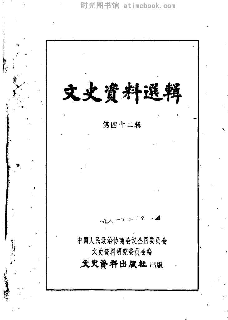 | 网盘路径:/时光图书馆珍藏系列/书籍文件/老图书/《文史资料选辑_第42辑》电子版合集.db | ||