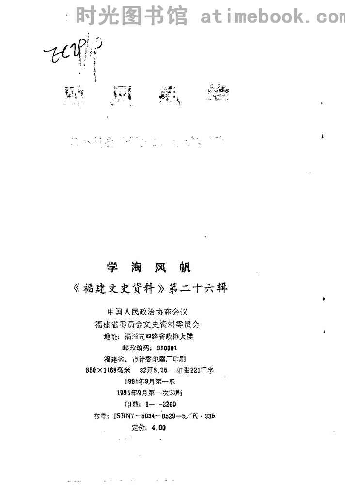 | 网盘路径:/时光图书馆珍藏系列/书籍文件/老图书/《学海风帆_福建文史资料_第26辑》电子版合集.db | ||