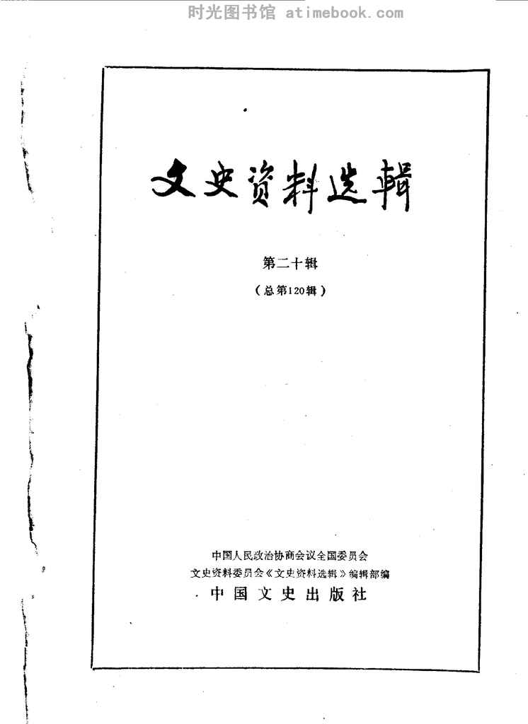 网盘路径:/时光图书馆珍藏系列/书籍文件/老图书/《文史资料选辑_第20辑_总120辑》电子版合集.db