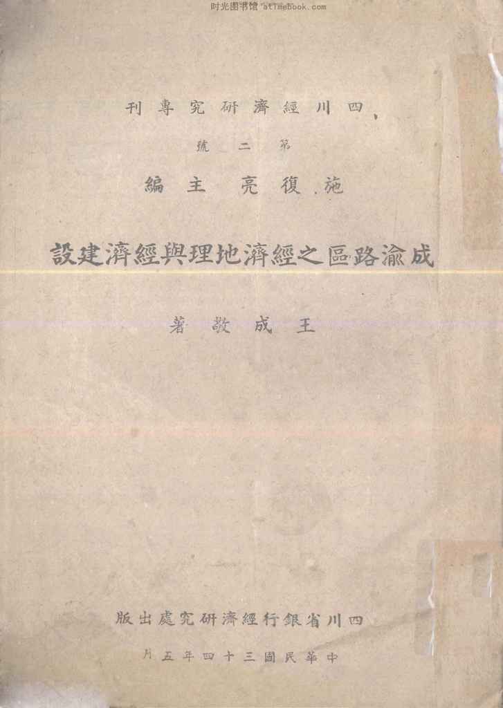 | 网盘路径:/时光图书馆珍藏系列/书籍文件/老图书/《成渝路区之经济地理与经济建设》电子版合集.db | ||