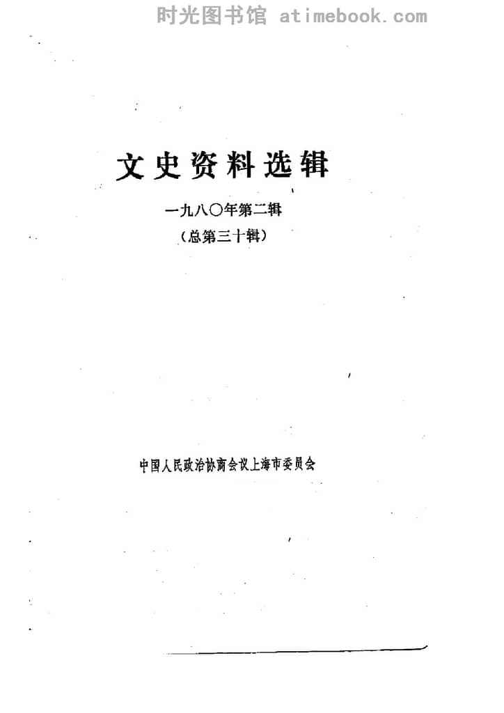 | 网盘路径:/时光图书馆珍藏系列/书籍文件/老图书/《上海文史资料选辑_1980年第2辑_总第30辑》电子版合集.db | ||