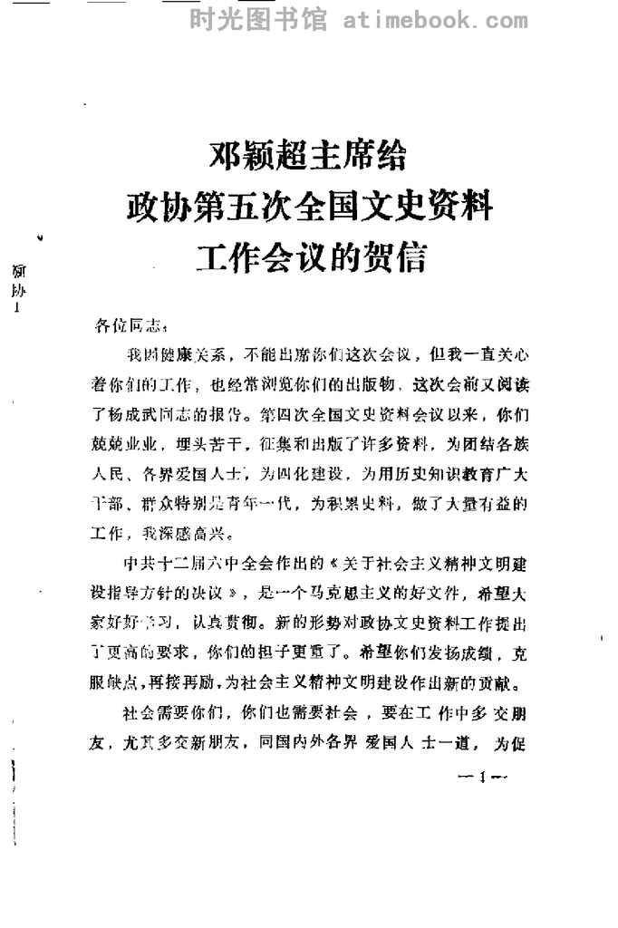 2-邓颖超主席给*第五次全国文史资料工作会议的贺信
