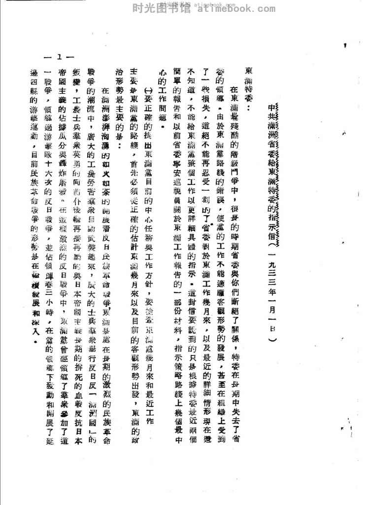 2-*满洲省委给东满特委的指示信(一九三三年一月一日)