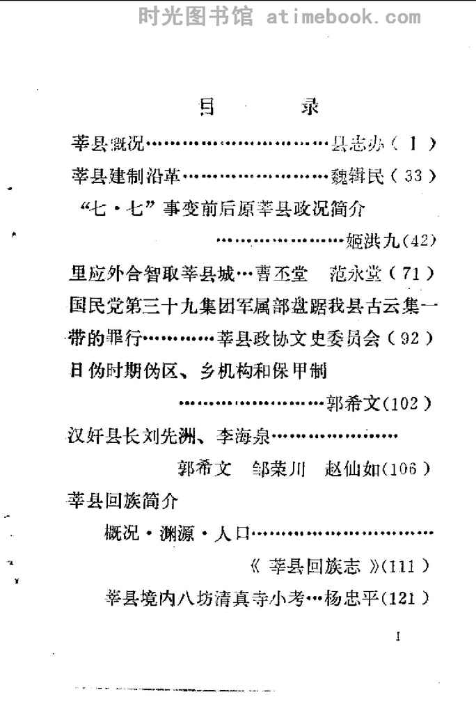 网盘路径:/时光图书馆珍藏系列/书籍文件/老图书/《莘县文史资料_第1辑》电子版合集.db