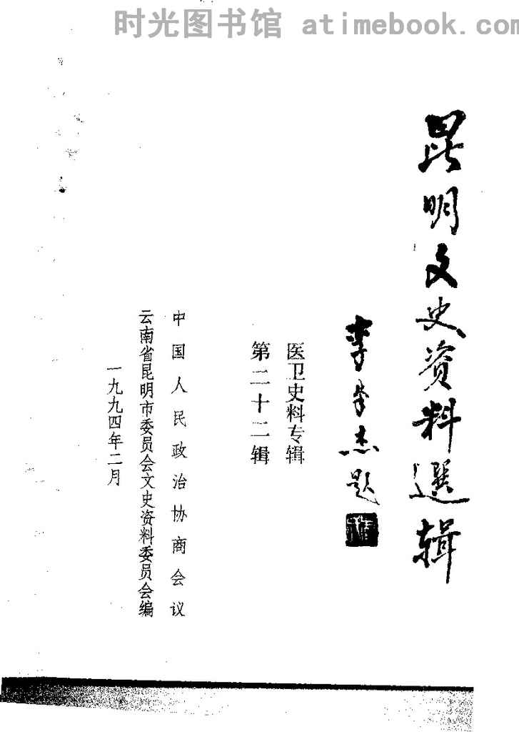 网盘路径:/时光图书馆珍藏系列/书籍文件/老图书/《昆明文史资料选辑_第22辑_医卫史料专辑》电子版合集.db