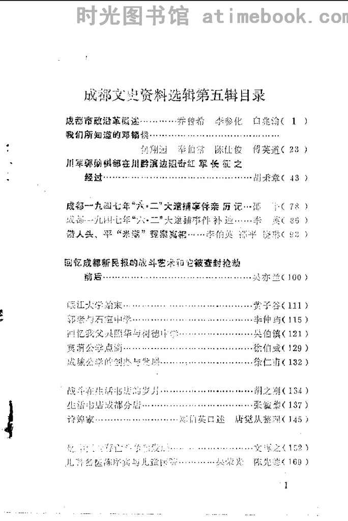 | 网盘路径:/时光图书馆珍藏系列/书籍文件/老图书/《成都文史资料选辑_第5辑》电子版合集.db | ||