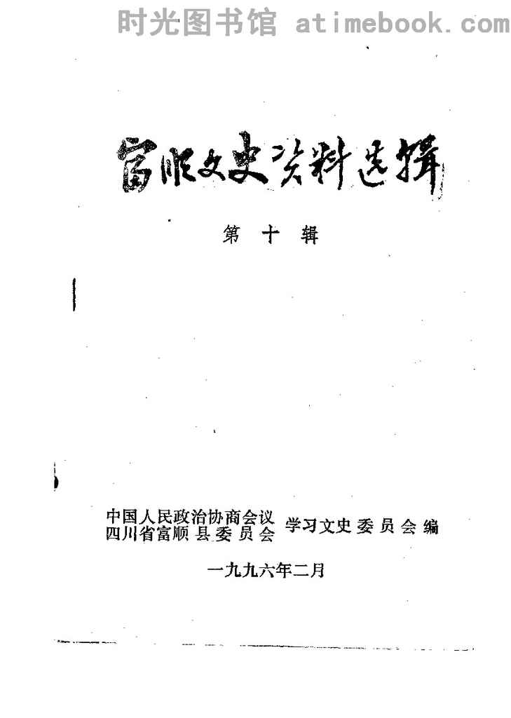 | 网盘路径:/时光图书馆珍藏系列/书籍文件/老图书/《富顺县文史资料选辑_第10辑》电子版合集.db | ||