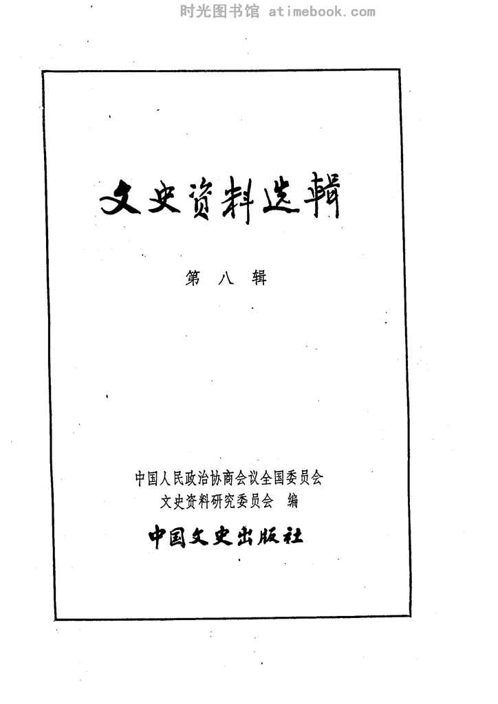 | 网盘路径:/时光图书馆珍藏系列/书籍文件/老图书/《文史资料选辑(合订本)第2卷第8辑》电子版合集.db | ||