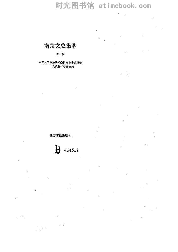| 网盘路径:/时光图书馆珍藏系列/书籍文件/老图书/《南京文史集萃_第1辑》电子版合集.db | ||