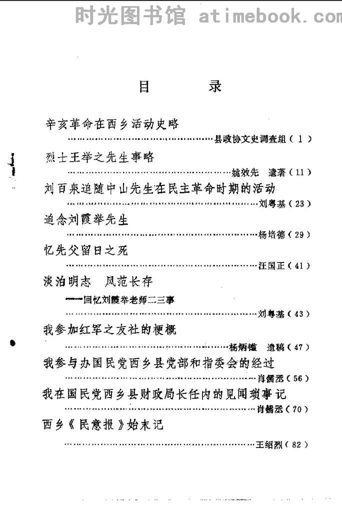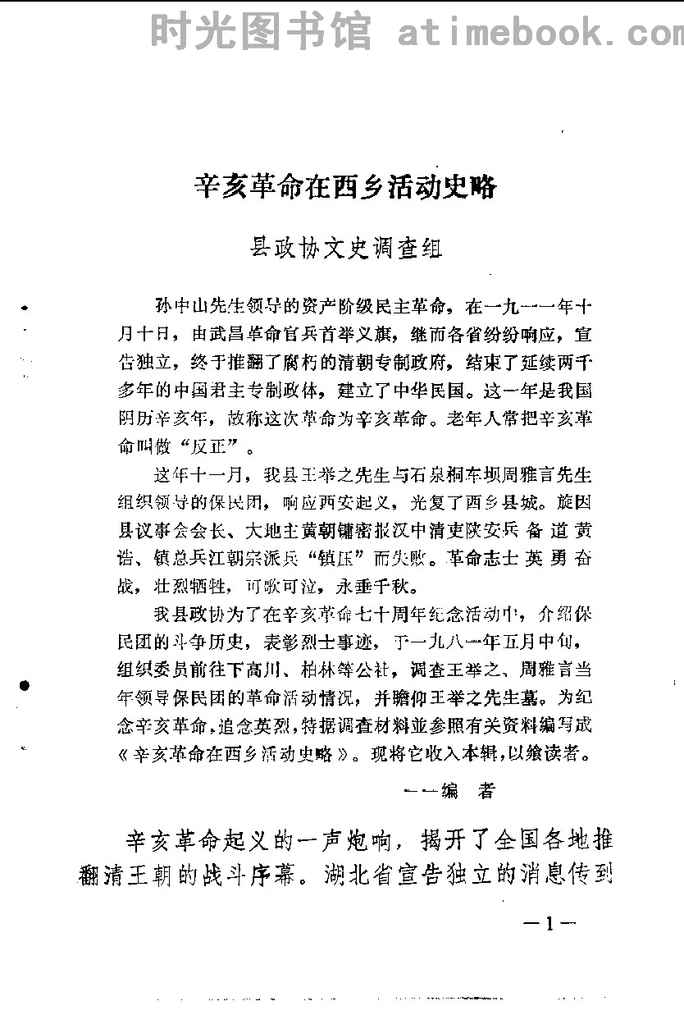 | 网盘路径:/时光图书馆珍藏系列/书籍文件/老图书/《西乡县文史资料_第1辑》电子版合集.db | ||