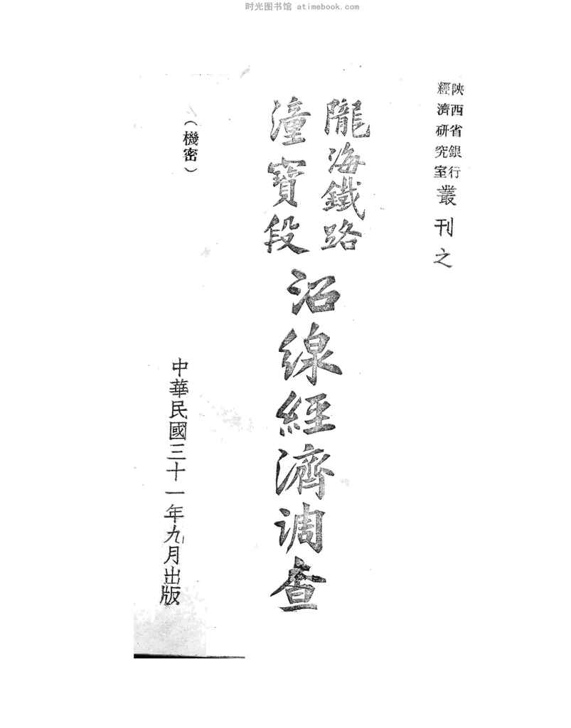 | 网盘路径:/时光图书馆珍藏系列/书籍文件/老图书/《陇海铁路潼保段沿线经济调查》电子版合集.db | ||