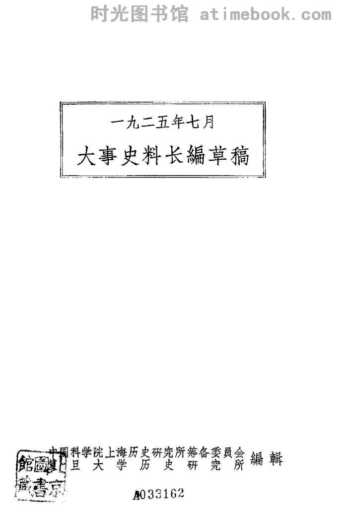 网盘路径:/时光图书馆珍藏系列/书籍文件/老图书/《大事史料长编草稿(一九二五年七月)》电子版合集.db
