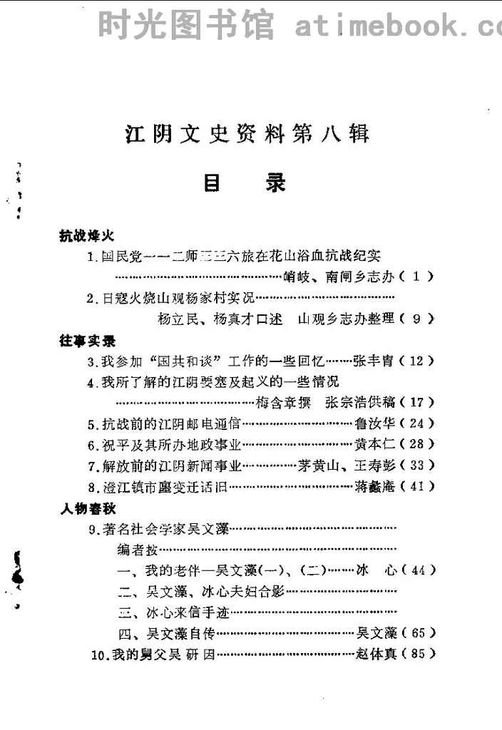 | 网盘路径:/时光图书馆珍藏系列/书籍文件/老图书/《江阴文史资料_第8辑》电子版合集.db | ||