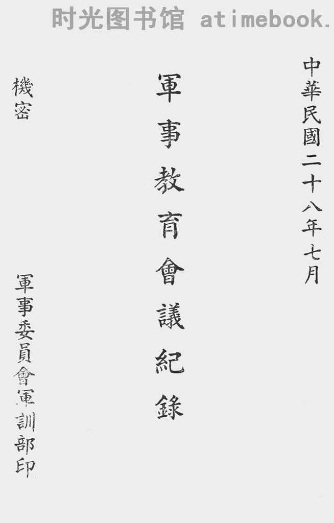 网盘路径:/时光图书馆珍藏系列/书籍文件/老图书/《军事教育会议纪录(中华民国二十八年七月)》电子版合集.db