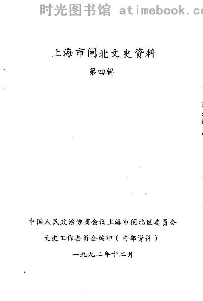 网盘路径:/时光图书馆珍藏系列/书籍文件/老图书/《上海市闸北文史资料_第3辑》电子版合集.db
