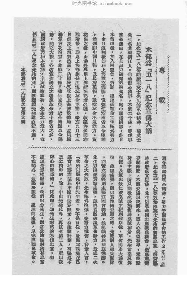 | 网盘路径:/时光图书馆珍藏系列/书籍文件/老图书/《五一八_五卅纪念合刊》电子版合集.db | ||