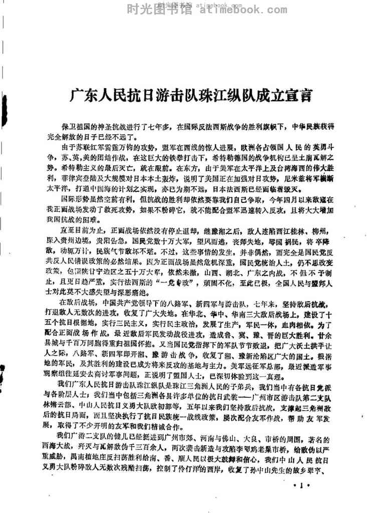 2-广东人民抗日游击队珠江纵队成立宣言(一九四五年一月)
